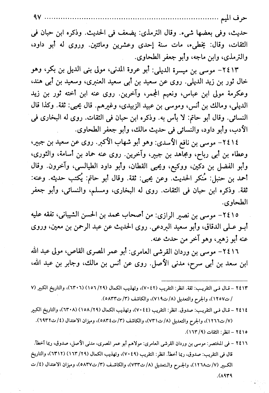 2415 - موسى بن نصير الرازى: من أصحاب محمد بن الحسن الشيبانى، تفقه عليه أبو على الدقاق، وأبو سعيد البردعى. روى الحديث عن عبد الرحمن بن معين، وروى عنه أبو زهير، وهو آخر من حدث عنه.