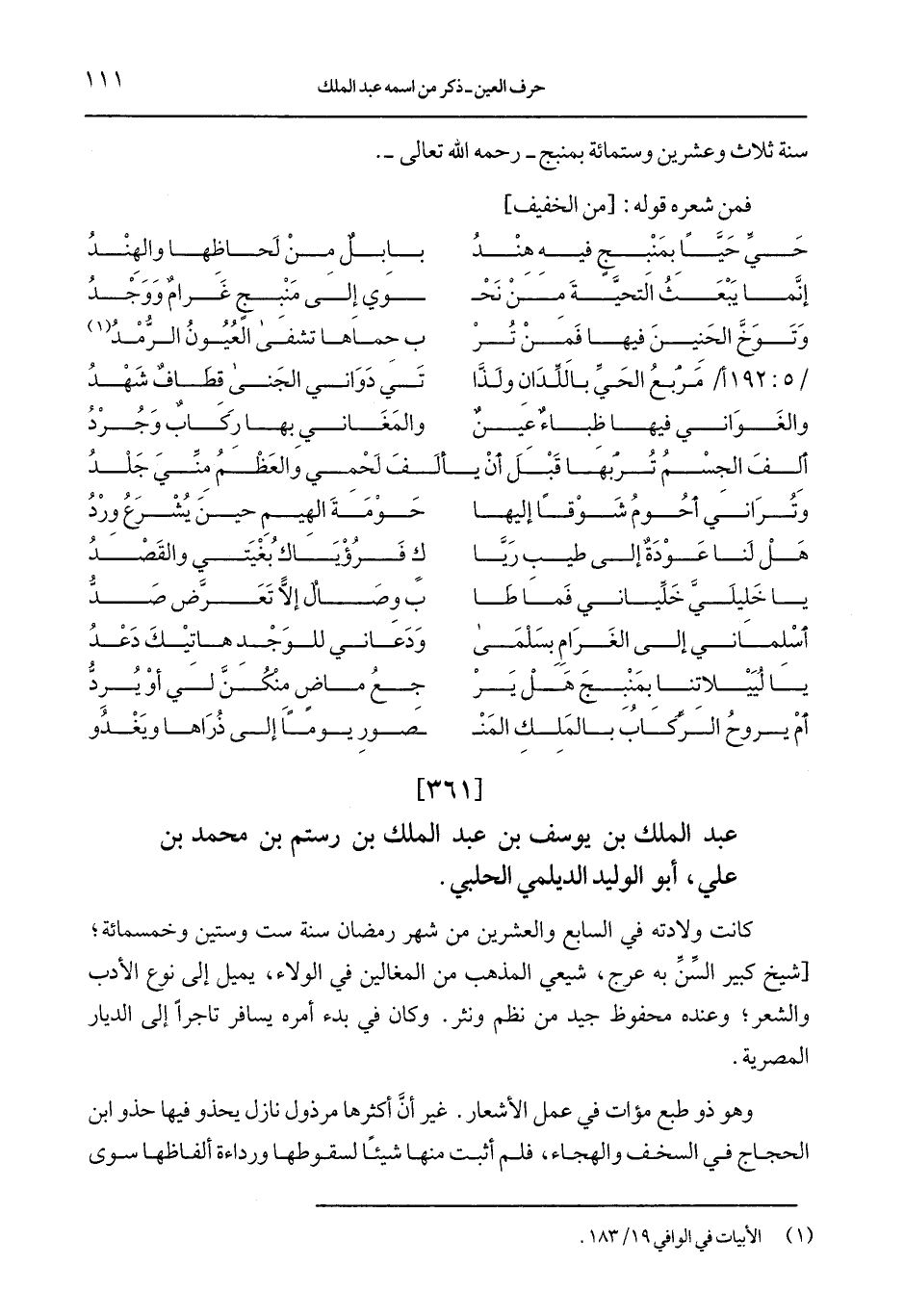 عبد الملك بن يوسف بن عبد الملك بن رستم بن محمد بن على، أبو الوليد الديلمي الحلبي.