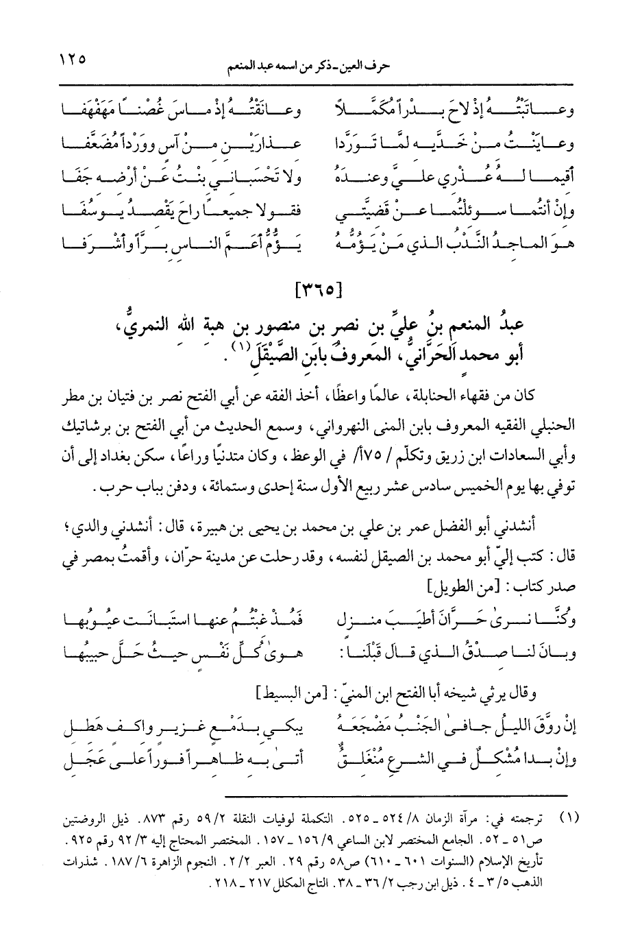 عبد المنعم بن عليِّ بن نصر بن منصور بن هبة الله النهريُّ، أبو محمد الحرَّاني، المعروف بابن الصَّيقل.