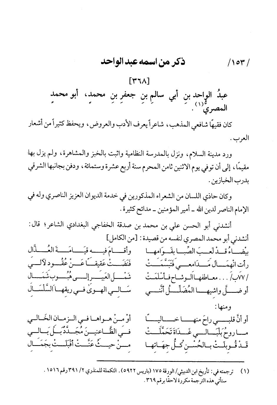 عبد الواحد بن أبي سالم بن جعفر بن محمدٍ، أبو محمد] المصريُّ.