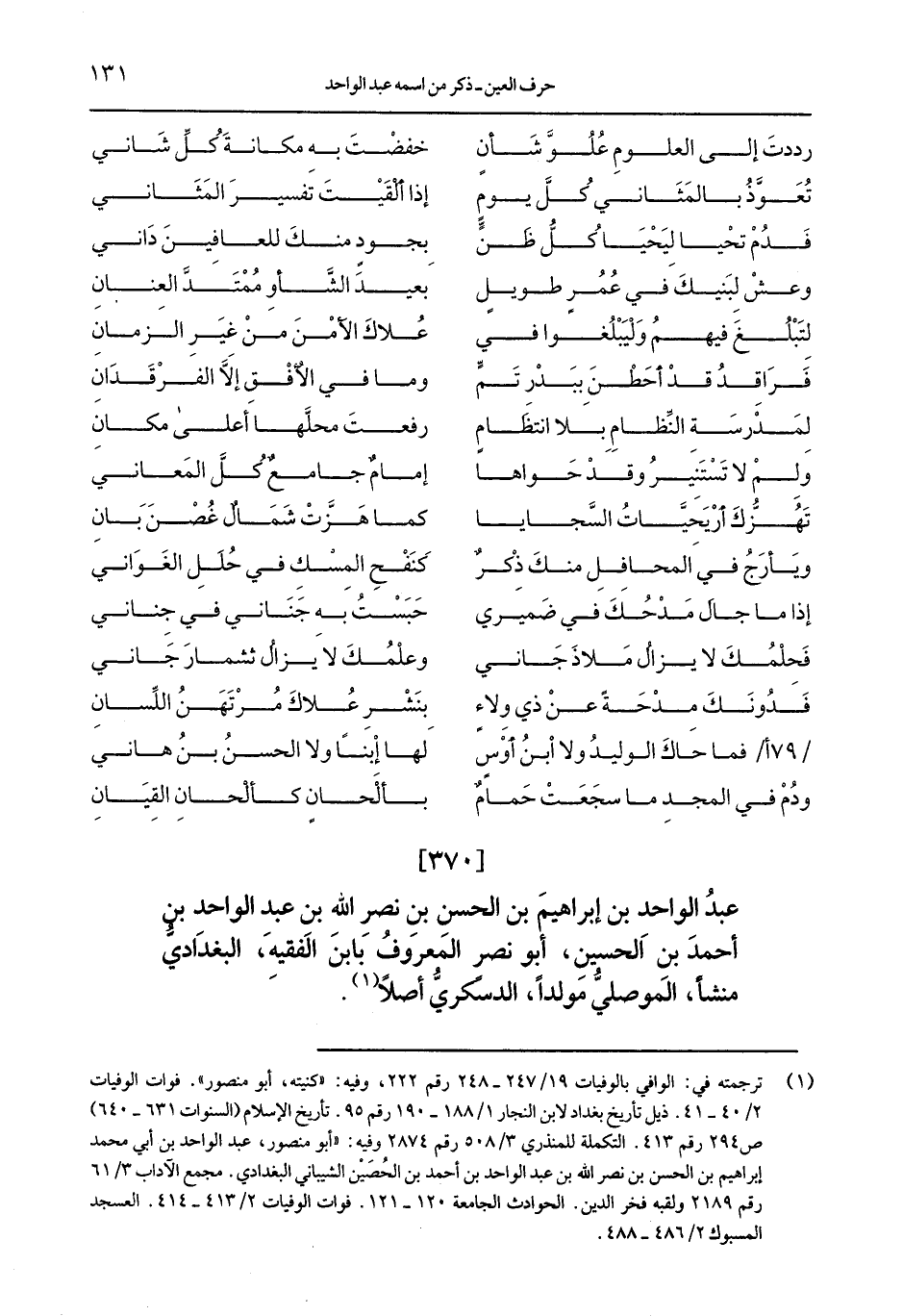 عبد الواحد بن إبراهيم بن الحسن بن نصر الله بن عبد الواحد بن أحمد بن الحسين، أبو نصر المعروف بابن الفقيه، البغدادي منشاً، الموصليُّ أصلاً.