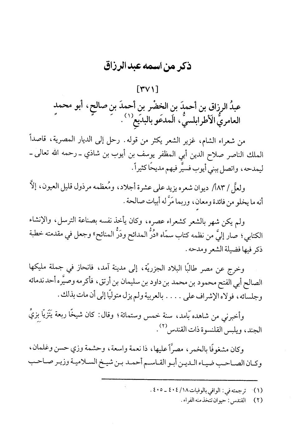 عبد الرازق بن أحمد بن الخضر بن أحمد بن صالحٍ، أبو محمدٍ العامريُّ الأطرابلسيُّ، المدعو بالبديع.