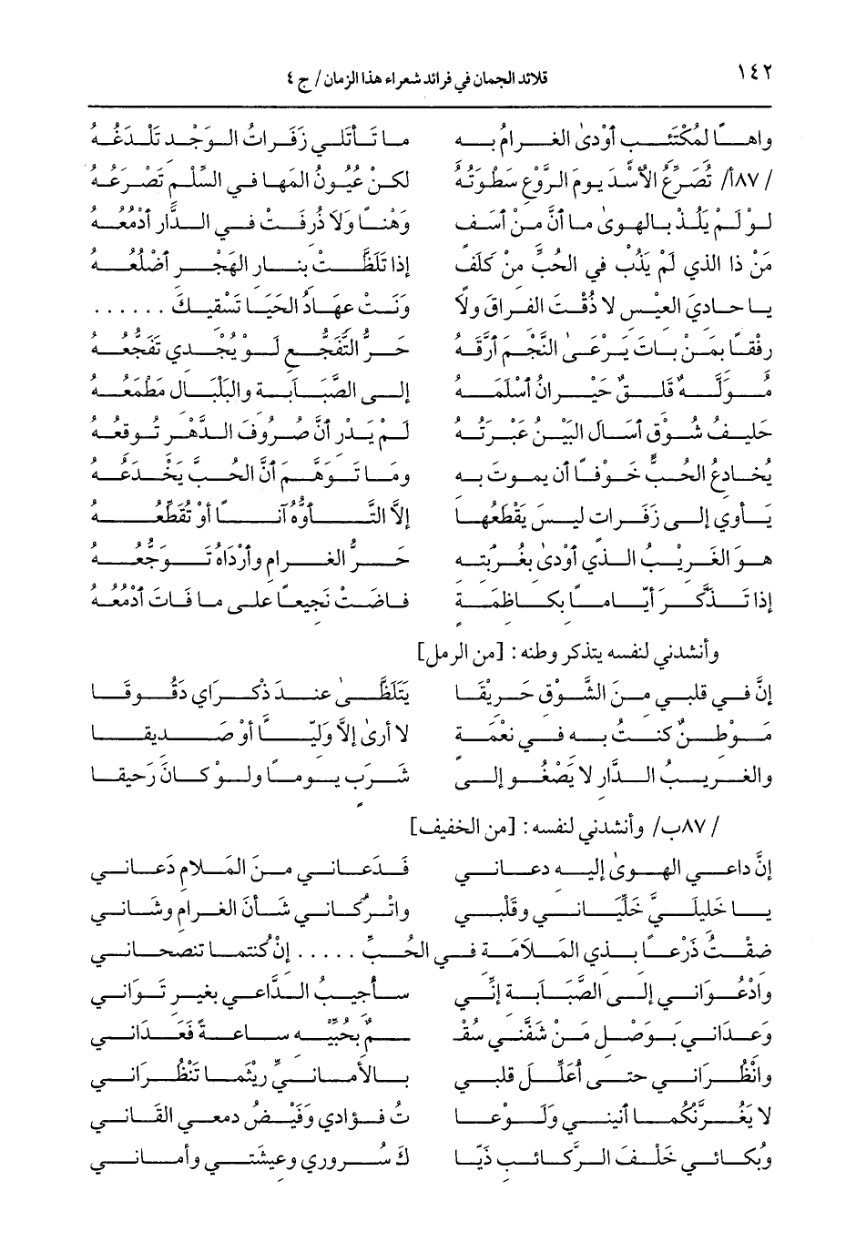 /87 ب/ وأنشدني لنفسه: [من الخفيف]