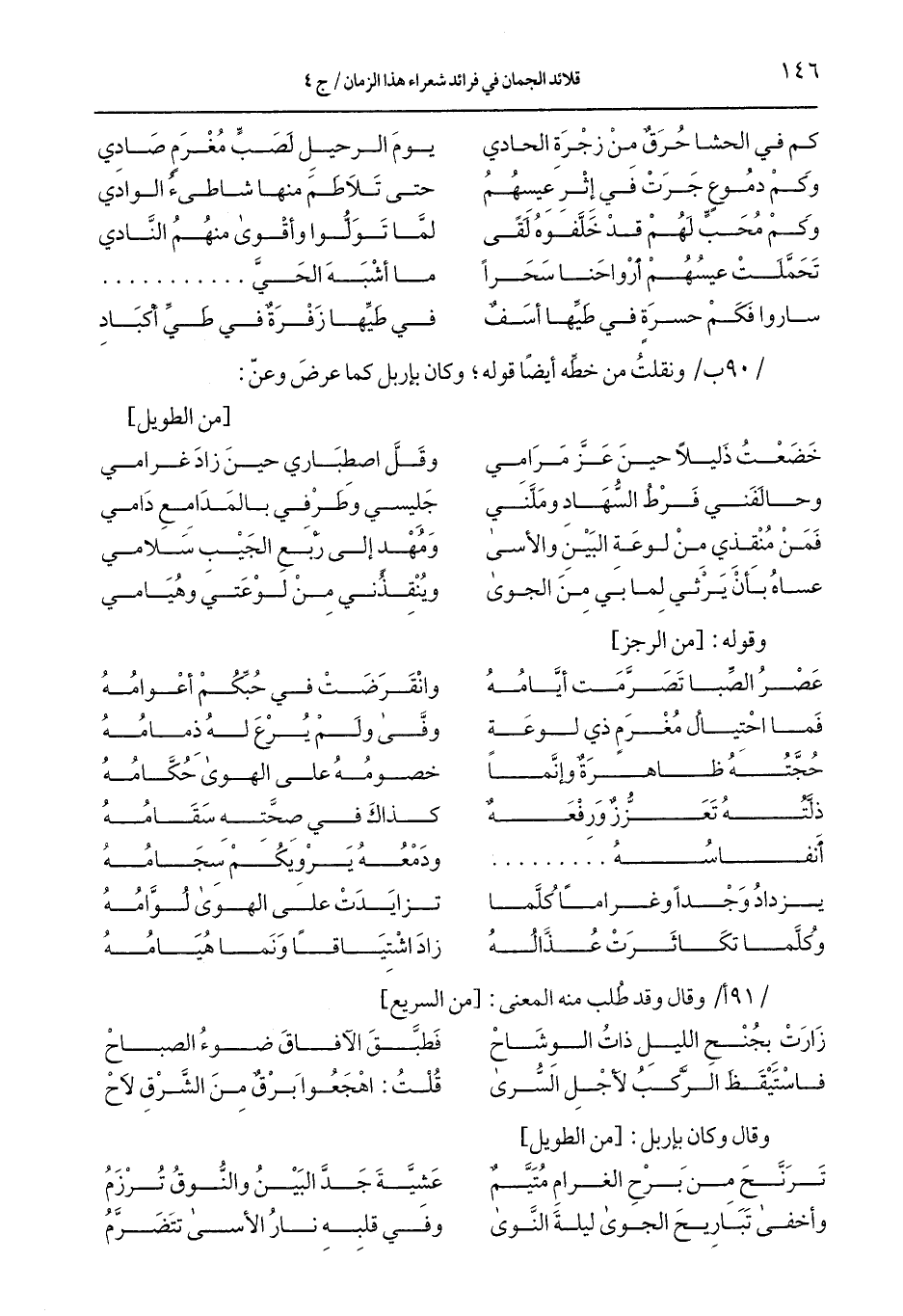 /90 ب/ ونقلت من خطّه أيضاً قوله؛ وكان بإربل كما عرض وعنّ: