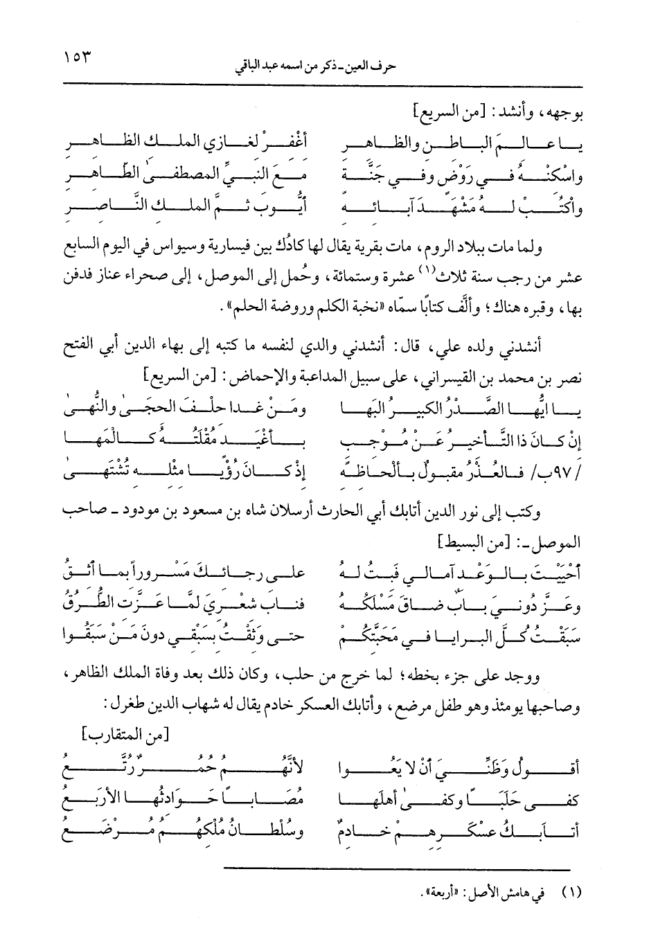 وكتب إلى نور الدين أتابلك أبي الحارث أرسلان شاه بن مسعود بن مودود –صاحب الموصل-: [من البسيط]
