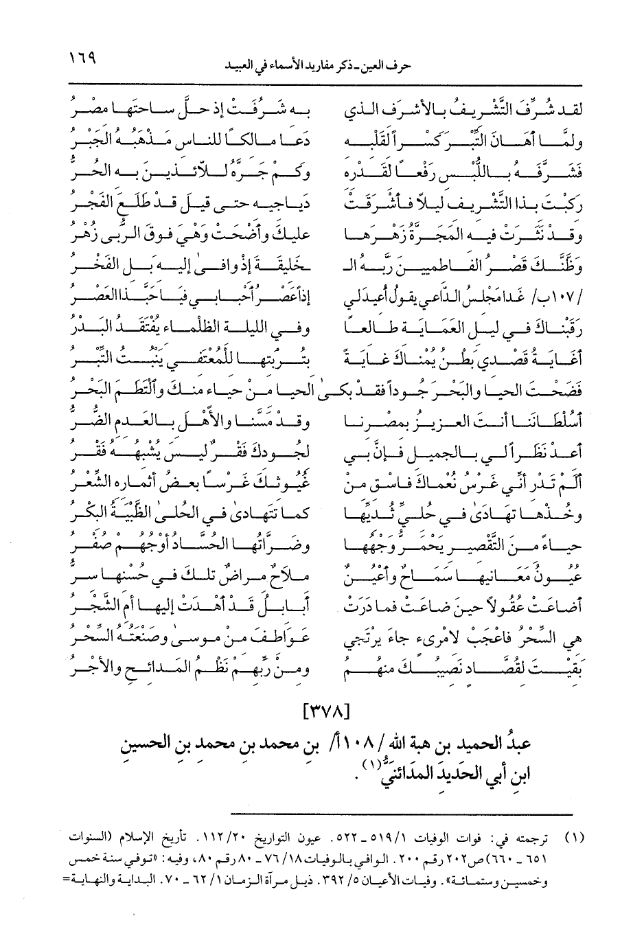 عبد المجيد بن هبة الله /108 أ/ بن محمد بن محمد بن الحسين ابن أبي الحديد المدائنّي