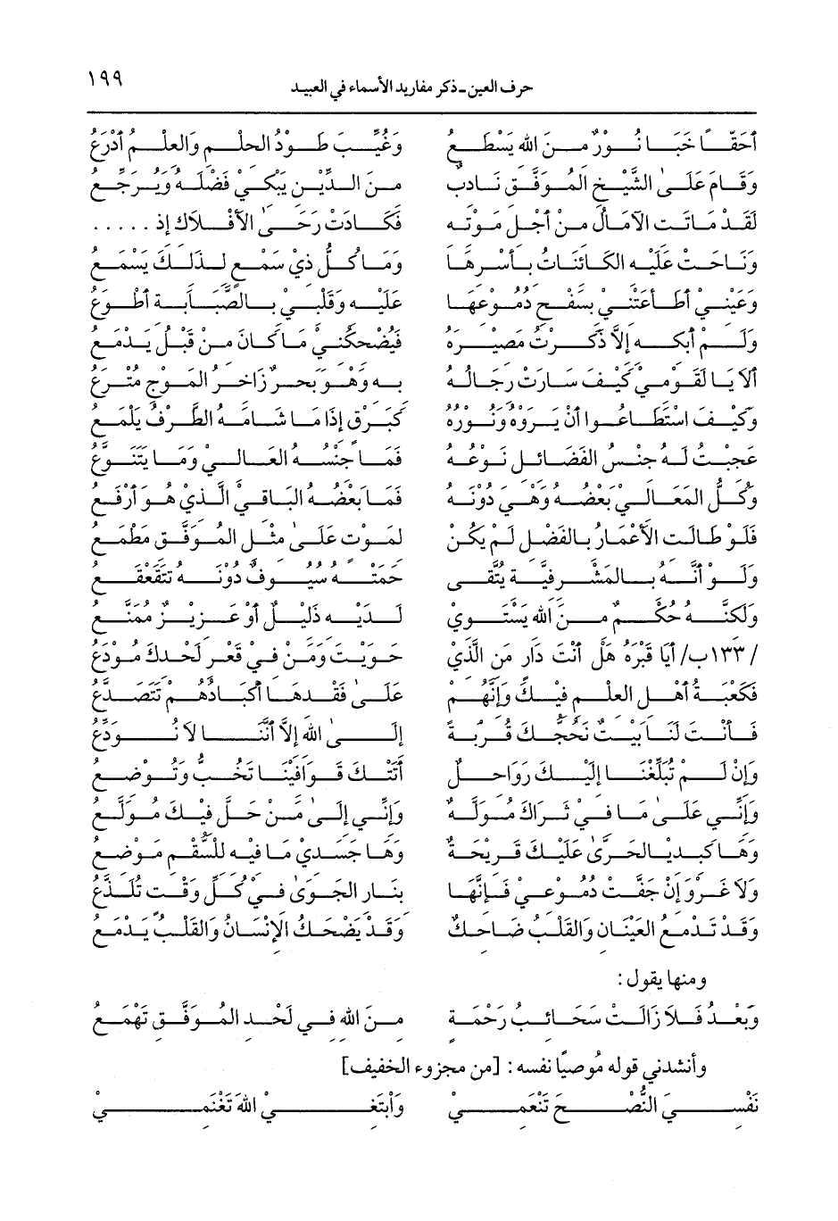وأنشدني قوله موصياً نفسه: [من مجزوء الخفيف]