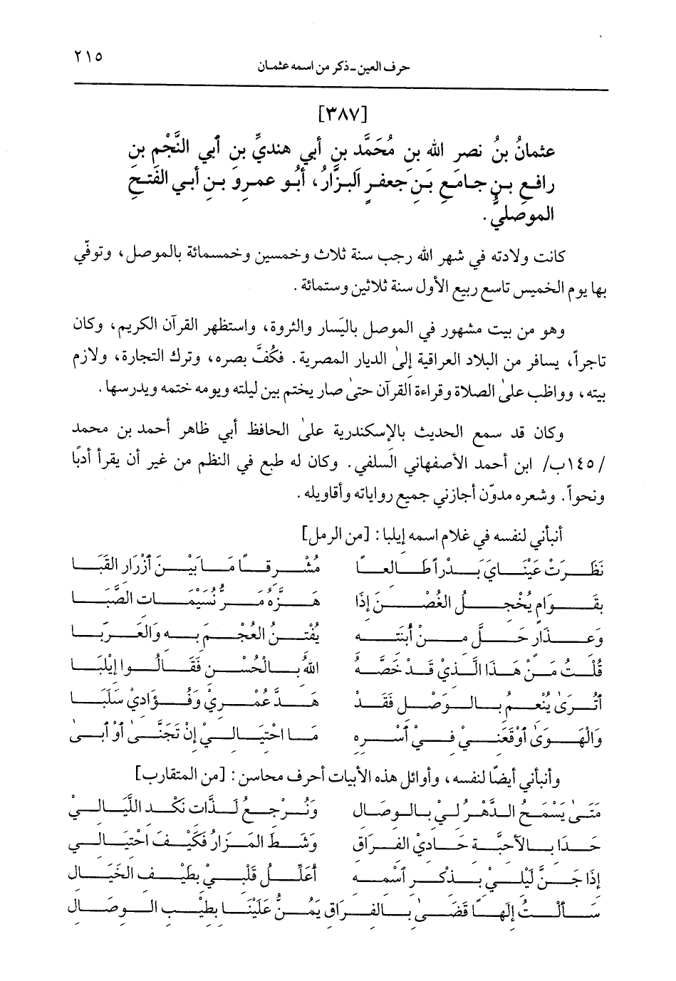 عثمان بن نصر الله بن محمد بن أبي هندي بن أبي النجم بن رافع بن جامع بن جعفر البزار، أبو عمرو بن أبي الفتح الموصلي.