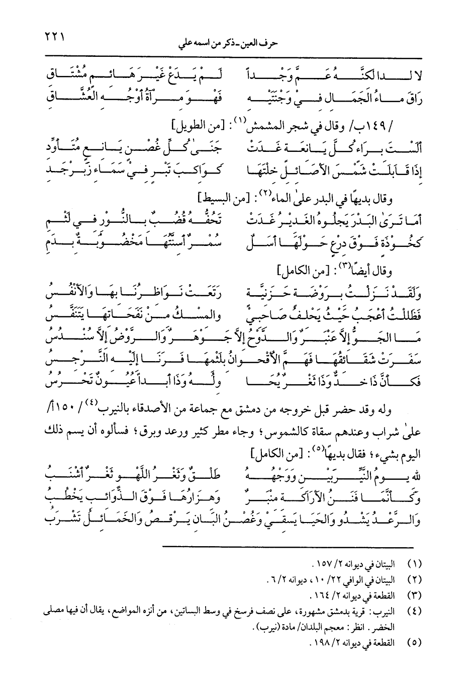وله وقد حضر قبل خروجه من دمشق مع جماعة من الأصدقاء بالنيرب /150 أ/