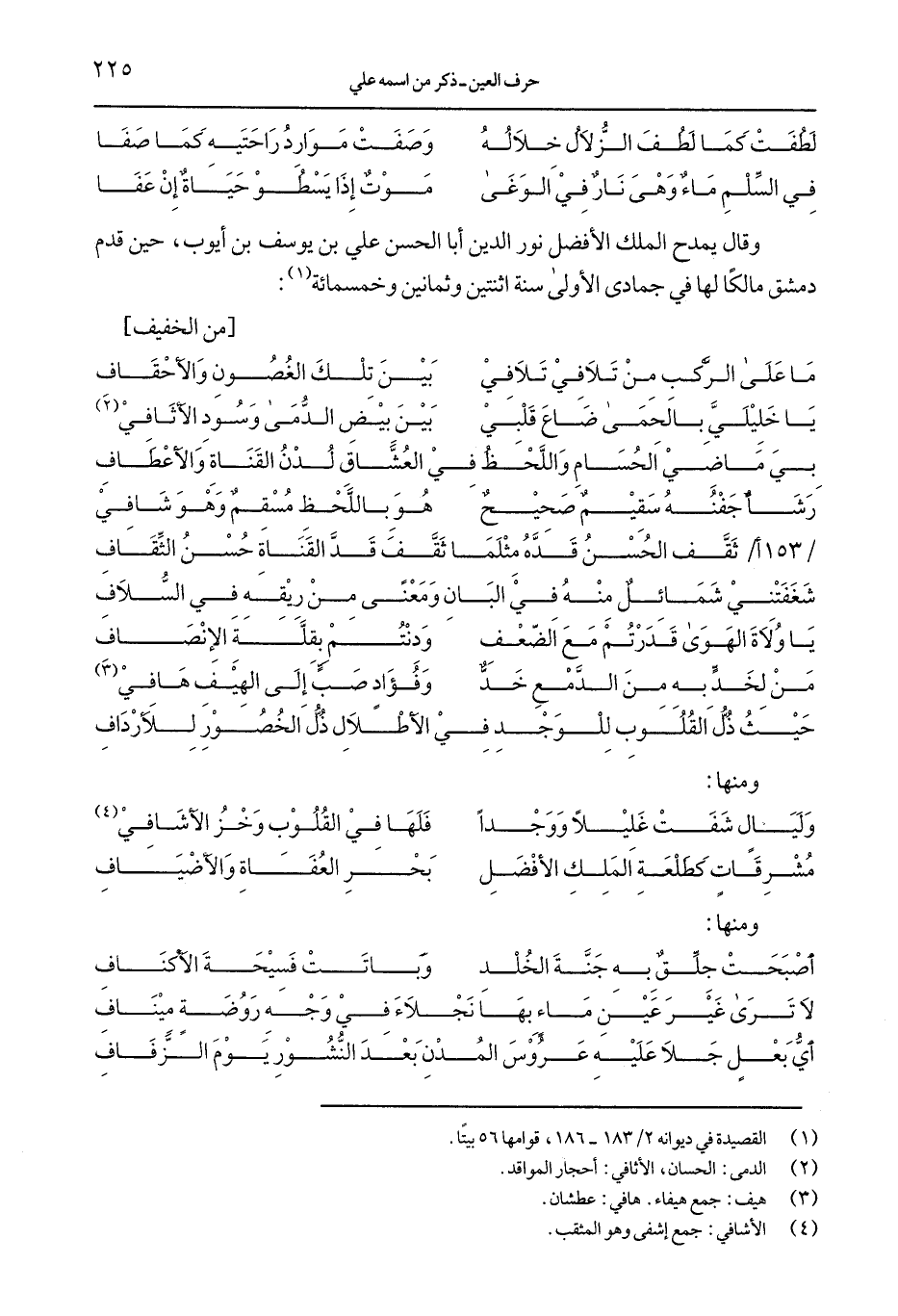 وقال يمدح الملك الأفضل نور الدين أبا الحسن علي بن يوسف بن أبوب, حين قدم