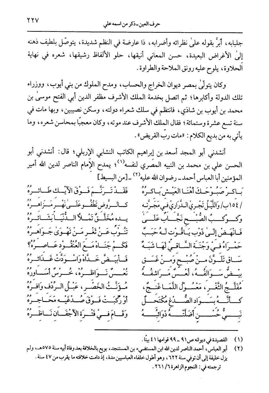 الحسن علي بن محمد بن النبيه المصري لنفسه؛ يمدح الإمام الناصر لدين الله أمير