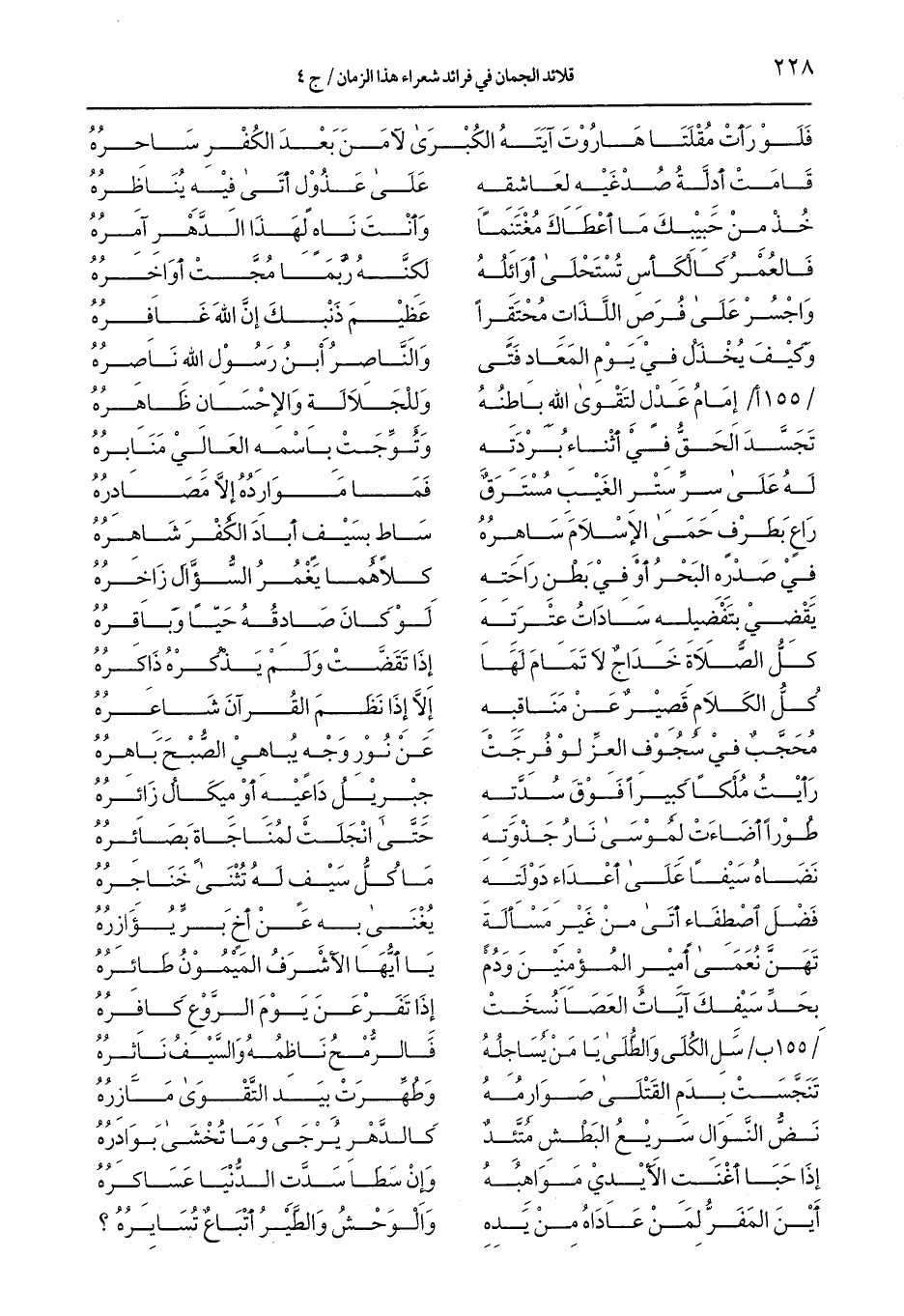 /155 ب/ سل الكلى والطلى يا من يسجله ... فالرمح ناظمه والسيف ناثره