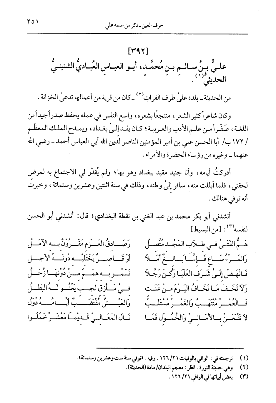 أنشدني أبو بكر محمد بن عبد الغني بن نقطة البغدادي؛ قال: أنشدني أبو الحسن لنفسه: [من البسيط]