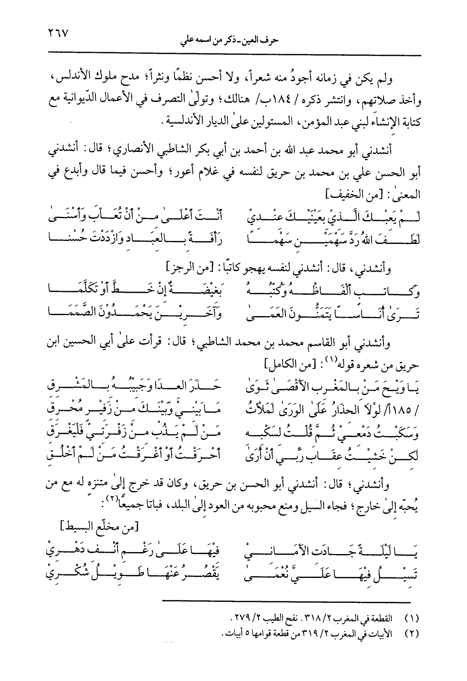وأنشدني أبو القاسم محمد بن محمد الشاطبي؛ قال: قرأت على أبي الحسين ابن حريق من شعره قوله: [من الكامل]