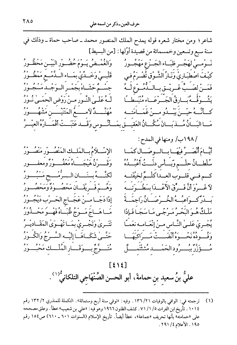 شاعر؛ ومن مختار شعره قوله يمدح الملك المنصور محمد – صاحب حمأة – وذلك في سنة سبع وتسعين وخمسمائة من قصيدة أوّلها: [من البسيط]