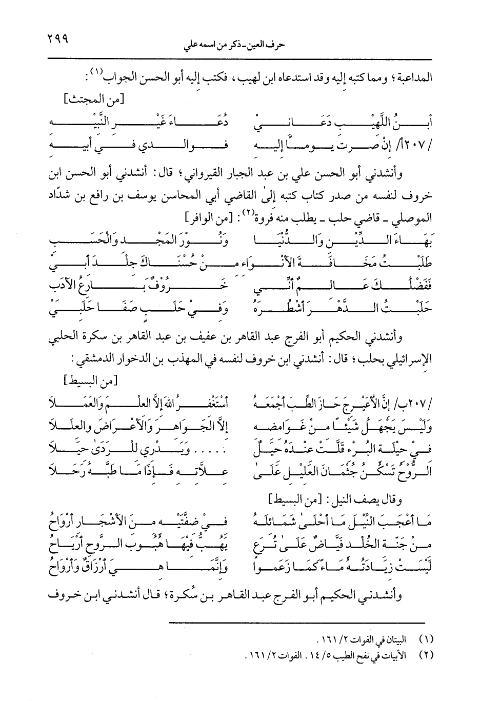 وأنشدني الحكيم أبو الفرج عبد القاهربن عفيف بن عبد القاهر بن سكرة الحلبى