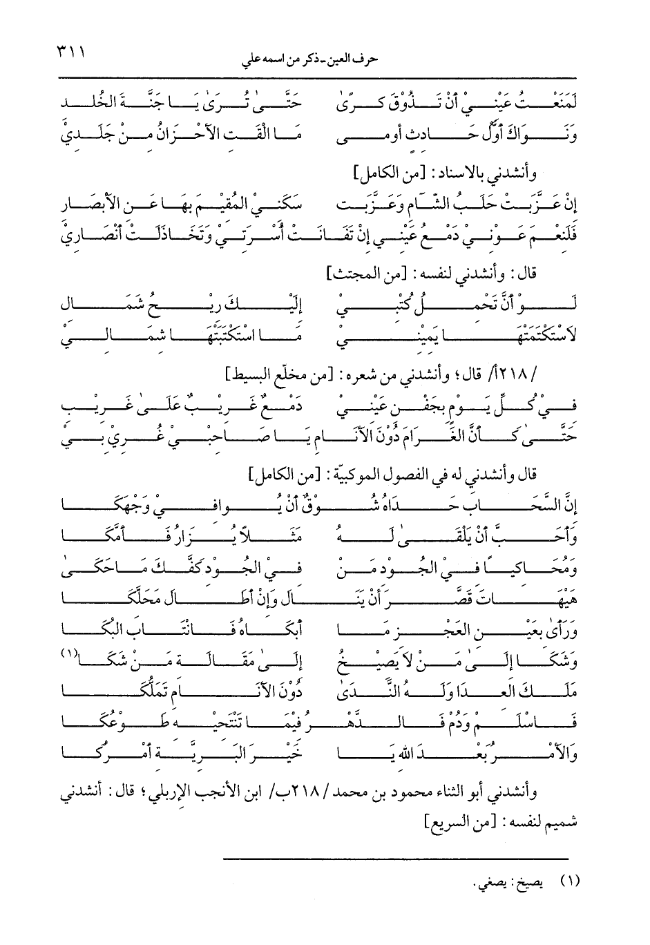 /218 أ/ قال؛ وأنشدني من شعره: [من مخلّع البسيط]