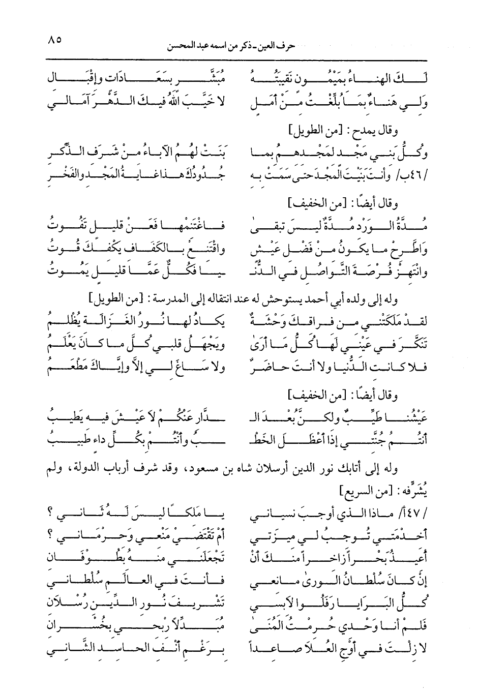 وله إلى أتابك نور الدين أرسلان شاه بن مسعود، وقد شرف أرباب الدولة، ولم يشرِّفه: [من السريع]