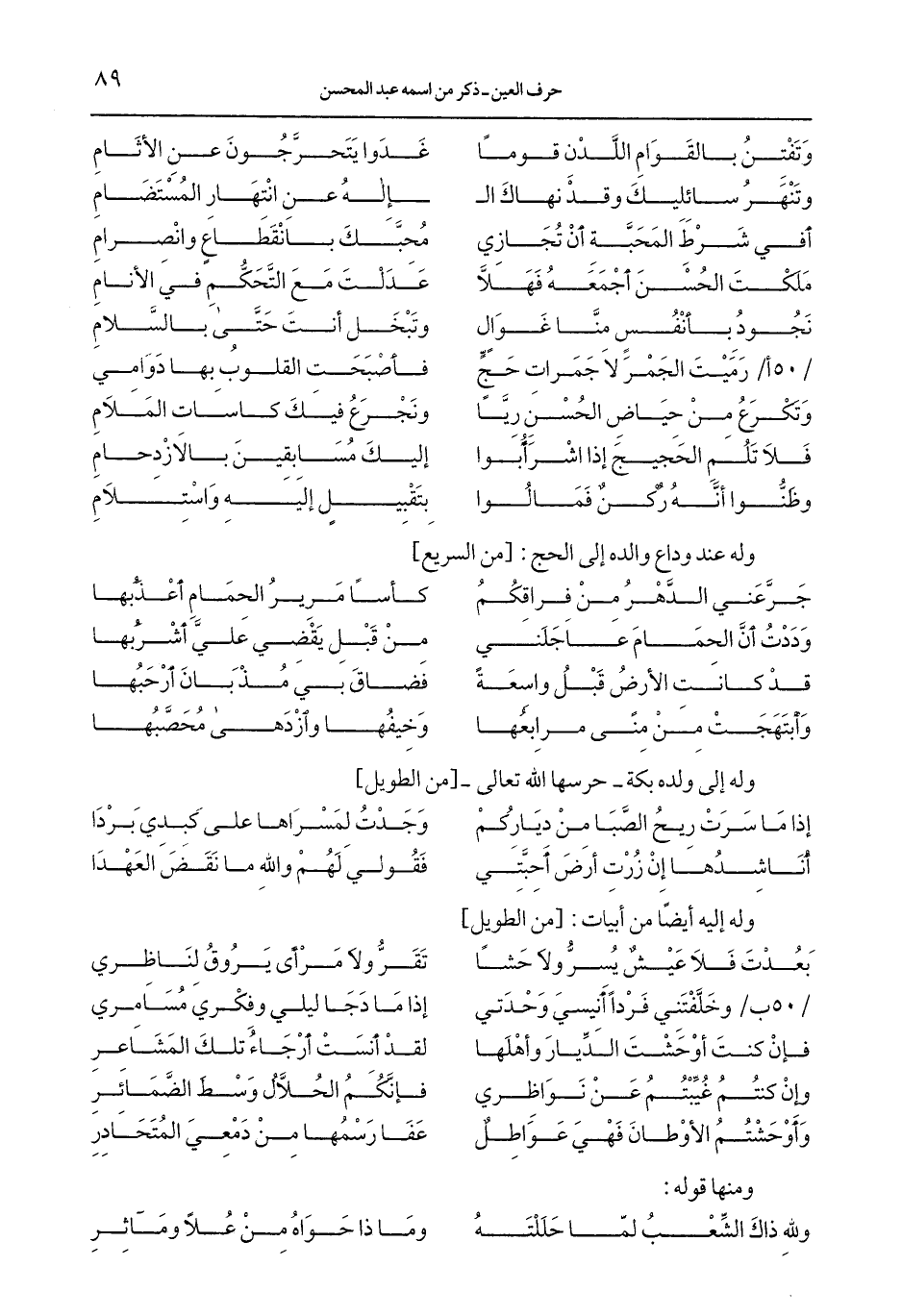 / 50 ب/ وخلَّفتنى فرداً أنيسي وحدتي ... إذا ما دجا ليلي وفري مسامري