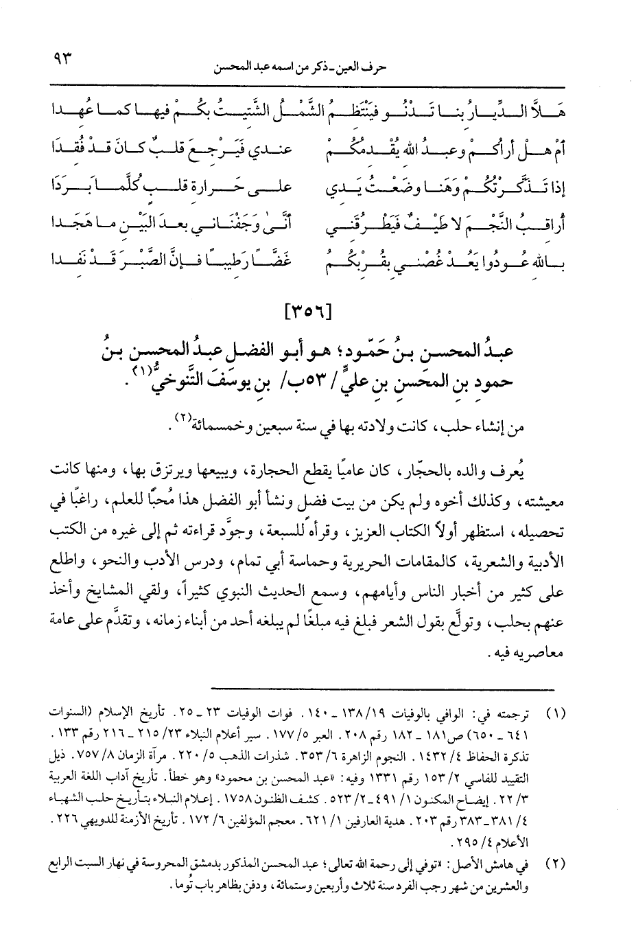عبد المحسن بن حمود؛ هو أبو الفضل عبد المحسن بن حمود بن المحسن بن علىٍّ/ 53 ب/ بن يوسف التَّنوخيُّ.