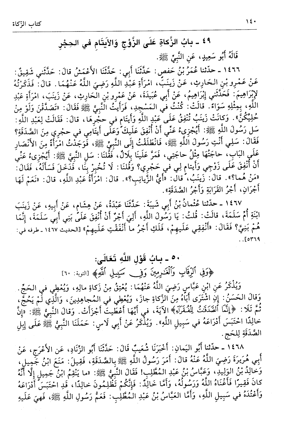 50 - باب قَوْلِ اللَّهِ تَعَالَى: {وَفِي الرِّقَابِ وَالْغَارِمِينَ وَفِي سَبِيلِ اللَّهِ} [التوبة: 60]