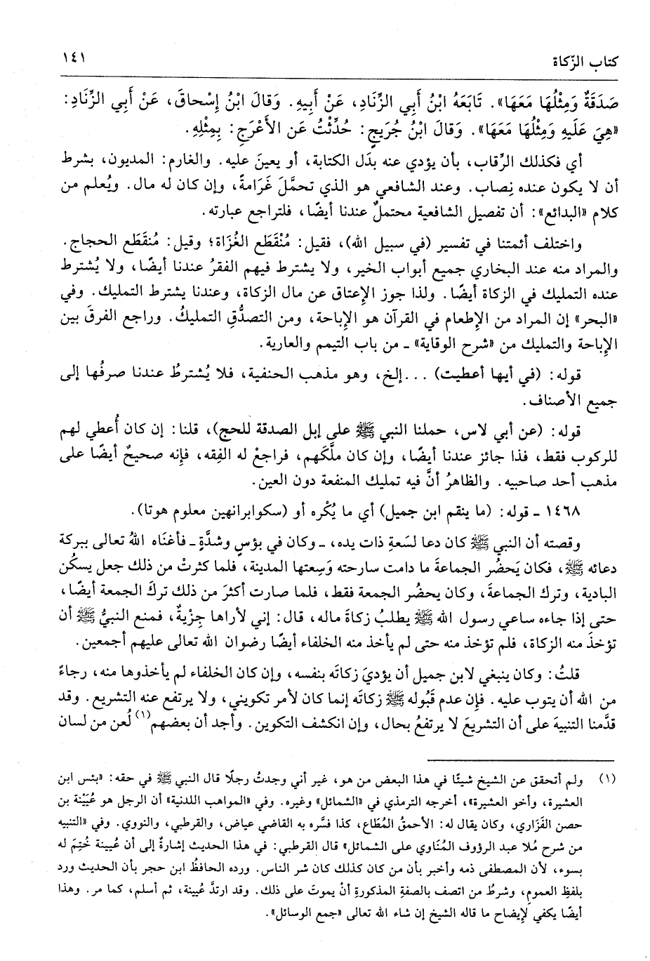 قلتُ: وكان ينبغي لابن جميل أن يؤديَ زكاتَه بنفسه، وإن كان الخلفاء لم يأخذوها منه، رجاءً من الله أن يتوب عليه. فإِن عدم قَبُوله صلى الله عليه وسلّم زكاتَه إنما كان لأمر تكويني، ولا يرتفع عنه التشريع. وقد قدَّمنا التنبيهَ على أن التشريعَ لا يرتفعُ بحال، وإن انكشف التكوين. وأجد أن بعضهم (¬1) لُعن من لسان