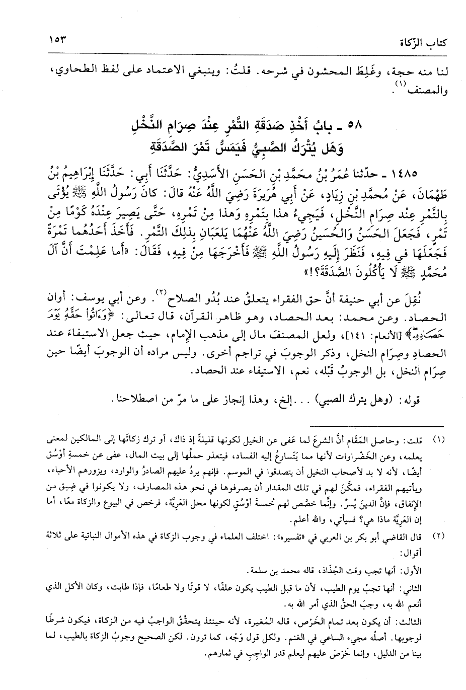 نُقِلَ عن أبي حنيفة أنَّ حق الفقراء يتعلقُ عند بُدُو الصلاح (¬2). وعن أبي يوسف: أوان الحصاد. وعن محمد: بعد الحصاد، وهو ظاهر القرآن، قال تعالى: {وَءاتُواْ حَقَّهُ يَوْمَ حَصَادِهِ} (الأنعام: 141)، ولعل المصنفَ مال إلى مذهب الإِمام، حيث جعل الاستيفاءَ عند الحصادِ وصِرَام النخل، وذكر الوجوبَ في تراجم أخرى. وليس مراده أن الوجوبَ أيضًا حين صِرَام النخل، بل الوجوبُ قَبْله، نعم، الاستيفاء عند الحصاد.