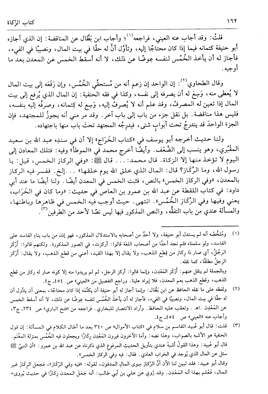 (¬2) ولفظه على ما نقله الحافظ عن ابن بَطَّال: وإنما أجاز له أبو حنيفة أن يكتُمَه إذا كان محتاجًا، بمعنى أن يتأول أن له حقًا في بيت المال، ونصيبًا في الفيء، فأجاز له أن يأخذَ الخُمُس لنفسه عِوضًا عن ذلك، لا أنه أسقط الخمس عن المَعْدِن. اهـ. وتعقب عليه الحافظ. وأراد الانتصار للبخاري. فراجعه من "فتح الباري" ص 234 - ج 3، وأجاب عنه "العيني" ص 454 - ج 4.