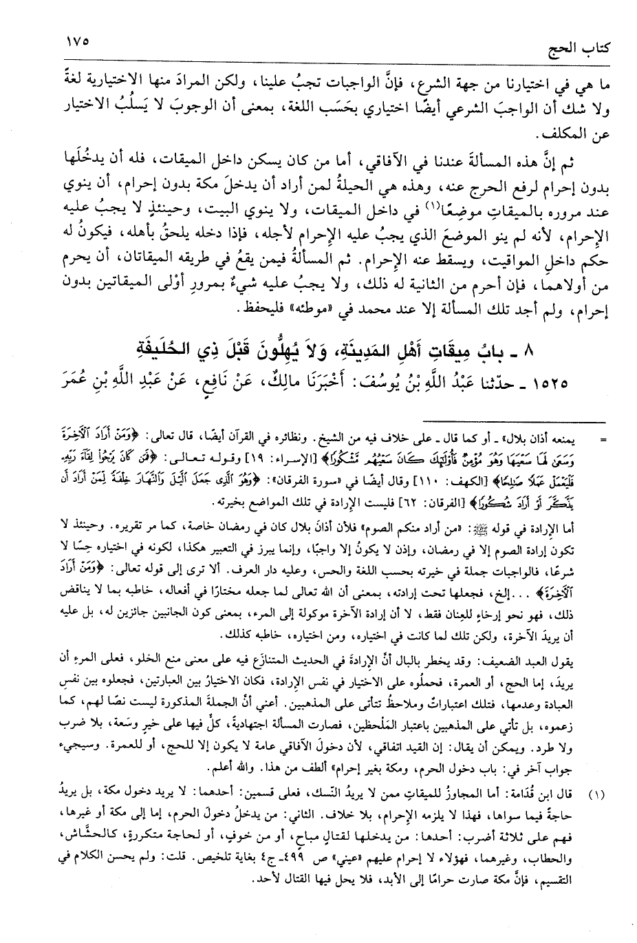 ثم إنَّ المسألةَ عندنا في الآفاقي، أما من كان يسكن داخل الميقات، فله أن يدخُلَها بدون إحرام لرفع الحرج عنه، وهذه هي الحيلةُ لمن أراد أن يدخلَ مكة بدون إحرام، أن ينوي عند مروره بالميقاتِ موضِعًا (¬1) في داخل الميقات، ولا ينوي البيت، وحينئذٍ لا يجبُ عليه الإِحرام، لأنه لم ينو الموضعَ الذي يجبُ عليه الإِحرام لأجله، فإذا دخله يلحقُ بأهله، فيكونُ له حكم داخلِ المواقيت، ويسقط عنه الإِحرام. ثم المسألةُ فيمن يقعُ في طريقه الميقاتان، أن يحرم من أولاهما، فإن أحرم من الثانية له ذلك، ولا يجبُ عليه شيءٌ بمرورِ أوْلى الميقاتين بدون إحرام، ولم أجد تلك المسألة إلا عند محمد في «موطئه» فليحفظ.