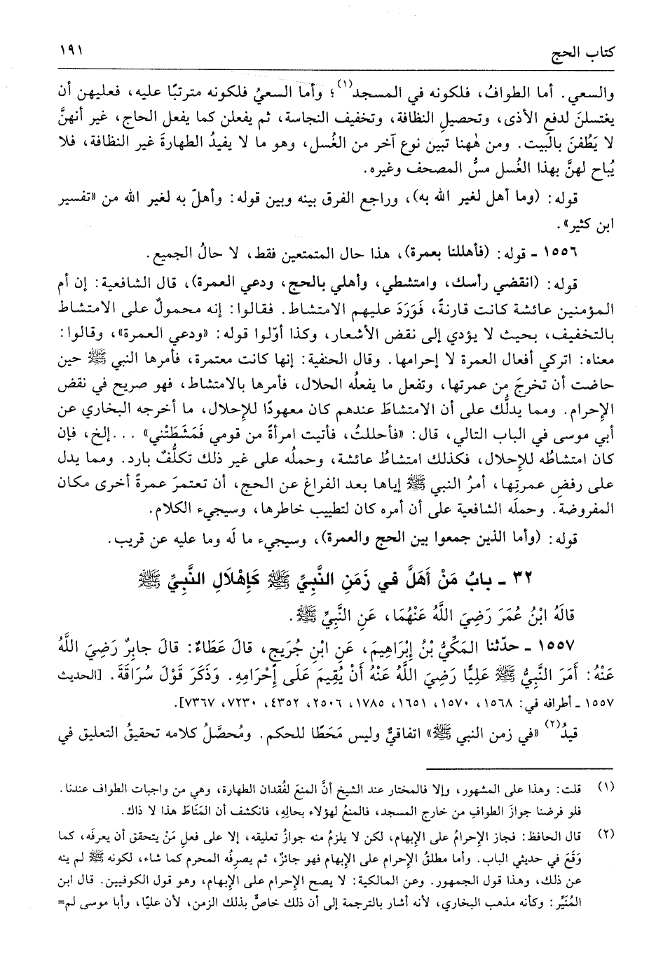1556 - قوله: (فأهللنا بعمرة)، هذا حال المتمتعين فقط، لا حالُ الجميع.