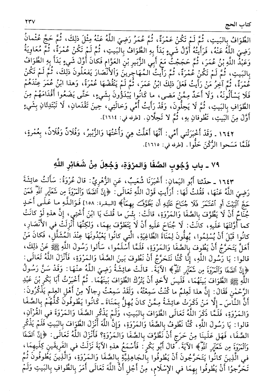 79 - باب وُجُوبِ الصَّفَا وَالْمَرْوَةِ، وَجُعِلَ مِنْ شَعَائِرِ اللَّهِ