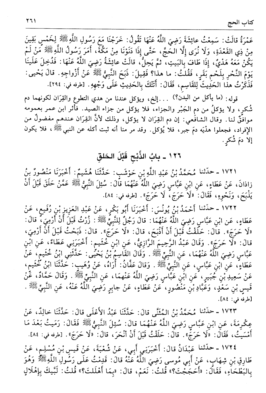 126 - باب الذَّبْحِ قَبْلَ الْحَلْقِ