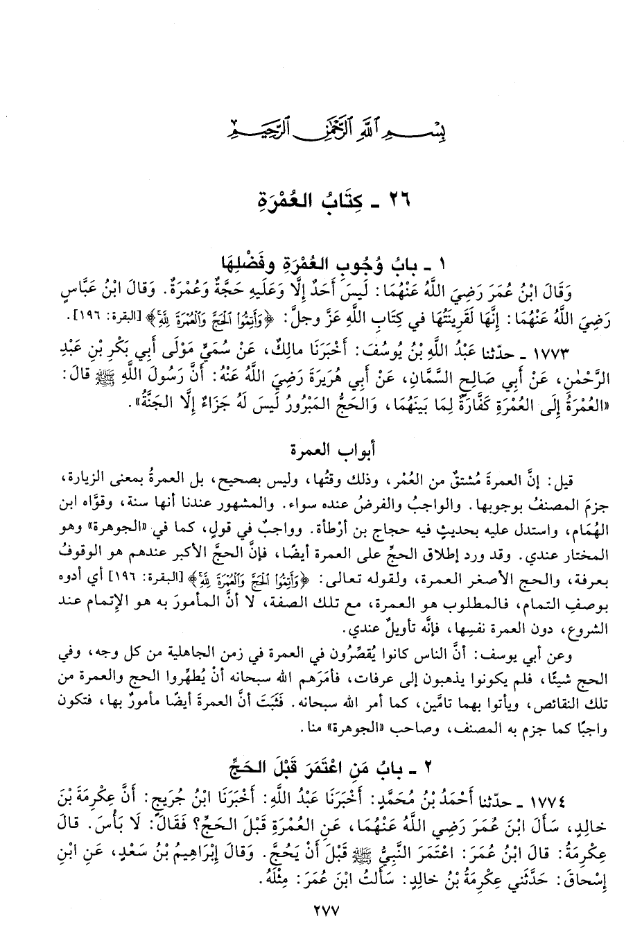 وقد ورد إطلاق الحجِّ على العمرة أيضًا، فإنَّ الحجَّ الأكبر عندهم هو الوقوفُ بعرفة، والحج الأصغر العمرة، ولقوله تعالى: {وَأَتِمُّوا الْحَجَّ وَالْعُمْرَةَ لِلَّهِ} [البقرة: 196] أي أدوه بوصفِ التمام، فالمطلوب هو العمرة، مع تلك الصفة، لا أنَّ المأمورَ به هو الإِتمام عند الشروع، دون العمرة نفسِها، فإنَّه تأويلٌ عندي.
