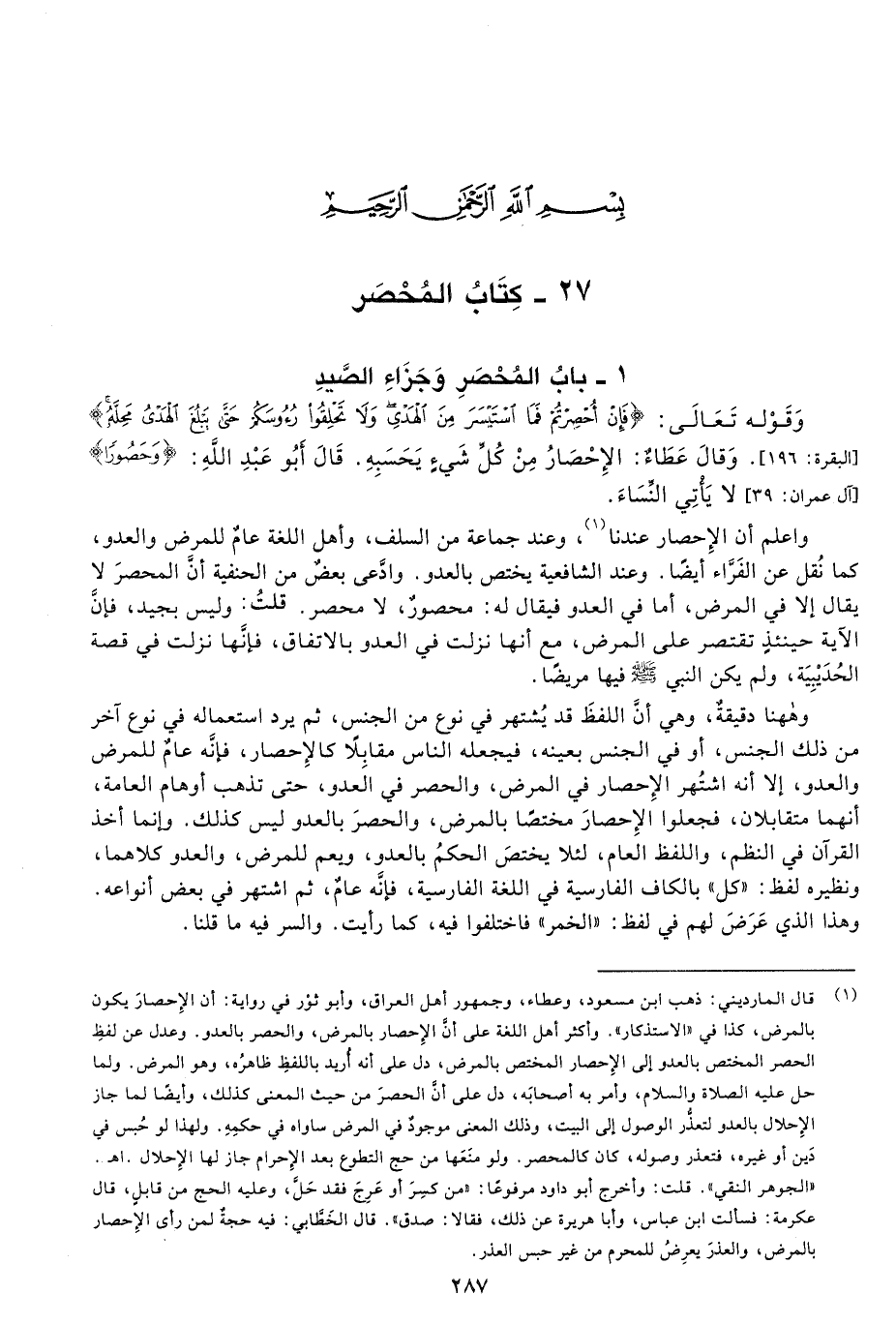 1 - باب الْمُحْصَرِ وَجَزَاءِ الصَّيْدِ