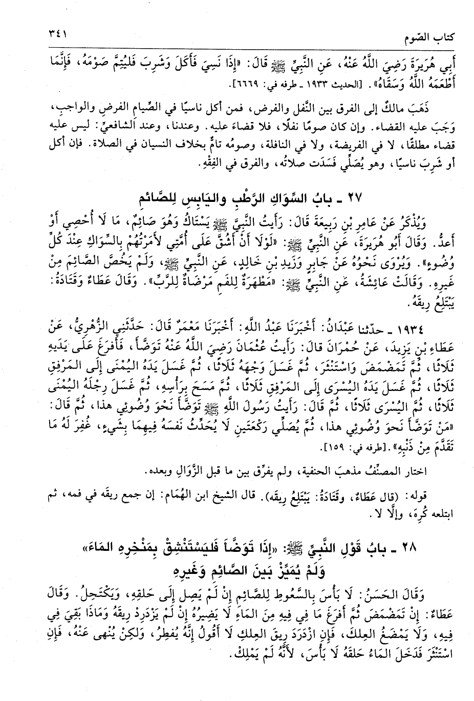 27 - باب السِّوَاكِ الرَّطْبِ وَالْيَابِسِ لِلصَّائِمِ