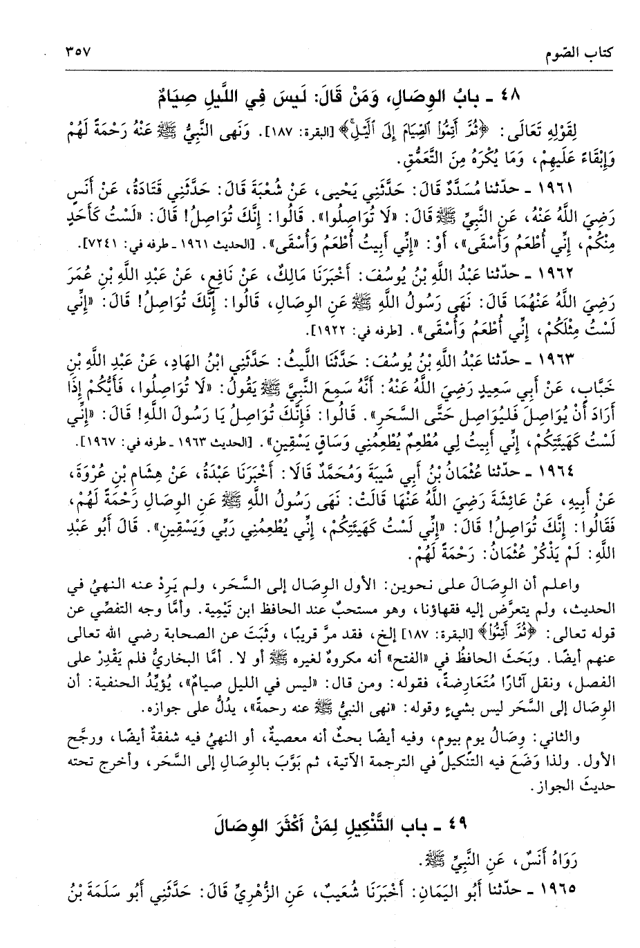48 - باب الْوِصَالِ، وَمَنْ قَالَ: لَيْسَ فِى اللَّيْلِ صِيَامٌ