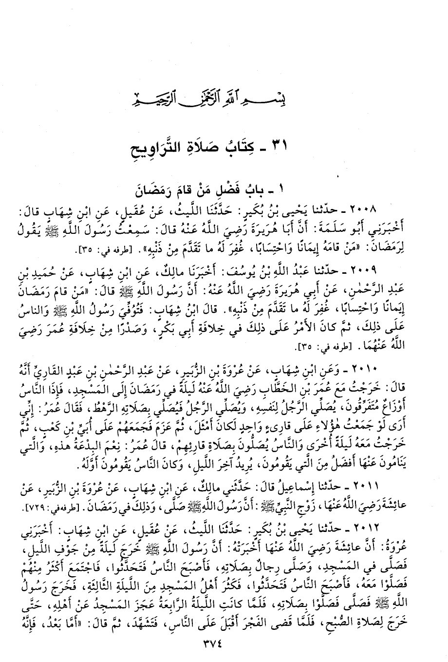 31 - كتابُ صَلاةِ التَّرَاوِيح
