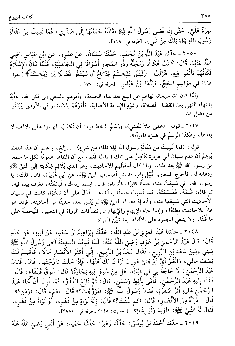 2047 - قوله: (على ملأ بَطْني)، ورَسْمُ الخط فيه: أن تُكْتَبَ الهمزة على الألف لا بعدها، وهكذا الرسمُ في همزة «امرأة».