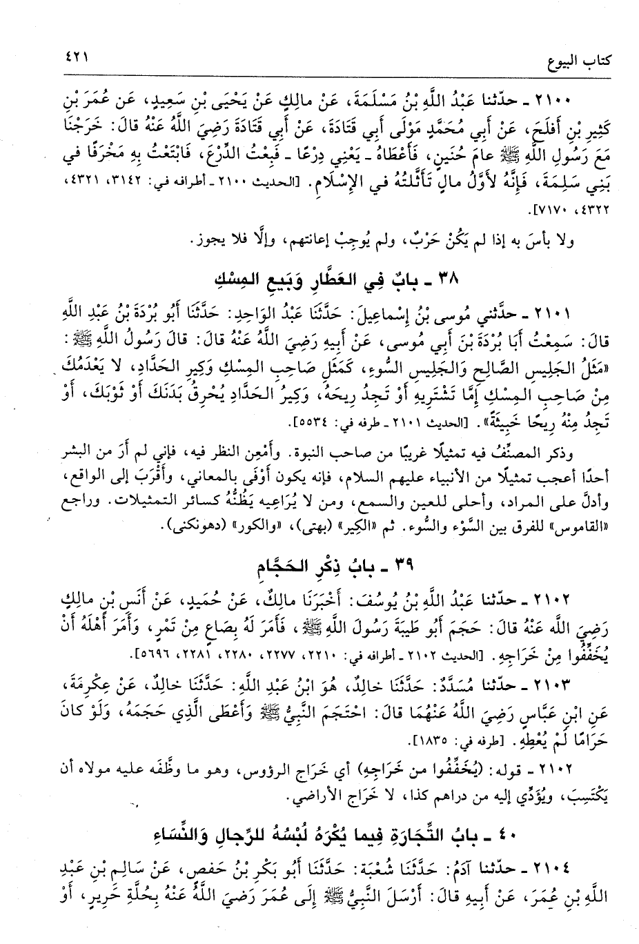 2103 - حَدَّثَنَا مُسَدَّدٌ حَدَّثَنَا خَالِدٌ - هُوَ ابْنُ عَبْدِ اللَّهِ - حَدَّثَنَا خَالِدٌ عَنْ عِكْرِمَةَ عَنِ ابْنِ عَبَّاسٍ - رضى الله عنهما - قَالَ احْتَجَمَ النَّبِىُّ - صلى الله عليه وسلم - وَأَعْطَى الَّذِى حَجَمَهُ، وَلَوْ كَانَ حَرَامًا لَمْ يُعْطِهِ. أطرافه 1835، 1938، 1939، 2278، 2279، 5691، 5694، 5695، 5699، 5700، 5701 - تحفة 6051 - 83/ 3
