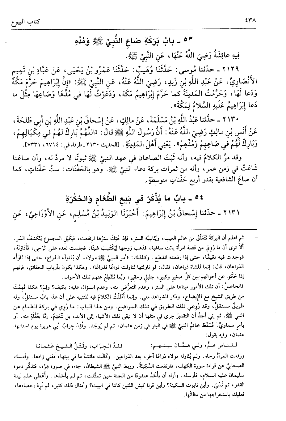 53 - باب بَرَكَةِ صَاعِ النَّبِىِّ - صلى الله عليه وسلم - وَمُدِّهِ