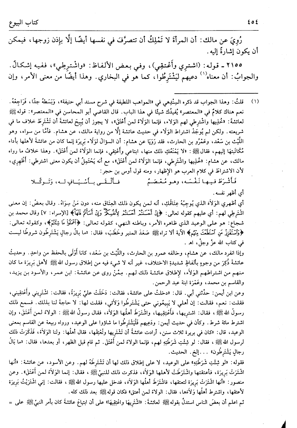 نعم هناك كلامٌ في "المعتصر" يُفيدُك شيئًا في هذا الباب. قال القاضي أبو المحاسن في "المعتصر": قوله - صلى الله عليه وسلم - لعائشةَ: "خُذِيها واشْترِطي لهم الوَلاء، فإنما الوَلَاءُ لمن أعْتَقَ"، لا يجوز أن يُبِيحَ لعائشةَ أن تَشْتَرِطَ خلاف ما في شريعته. ولكن لم يُوجَدْ اشتراط الوَلَاء في حديث عائشة إلَّا من رواية مالك، عن هشام. فأمَّا من سواه، وهو اللَّيْث بن سَعْد، وعَمْرُو بن الحارث، فقد رَوَيَا عن هشام: أن السؤالَ لوَلَاء بَرِيرَة إنما كان من عائشةَ لأهلها بأداء مُكَاتَبتهَا إليهم، فقال - صلى الله عليه وسلم -: "لا يَمْنَعُكِ ذلك منها، ابتاعي وأعْتِقي، فإنما الوَلَاءُ لمن أَعْتَقَ". وهذا خلافُ ما رواه مالك، عن هشام: "خُذِيها واشْتَرِطي، فإنما الوَلَاءُ لمن أعْتَقَ"، مع أنه يَحْتَمِلُ أن يكون معنى اشترطي: أَظْهِرِي، لأن الاشتراطَ في كلام العرب هو الإِظهار، ومنه قول أوس بن حجر:
