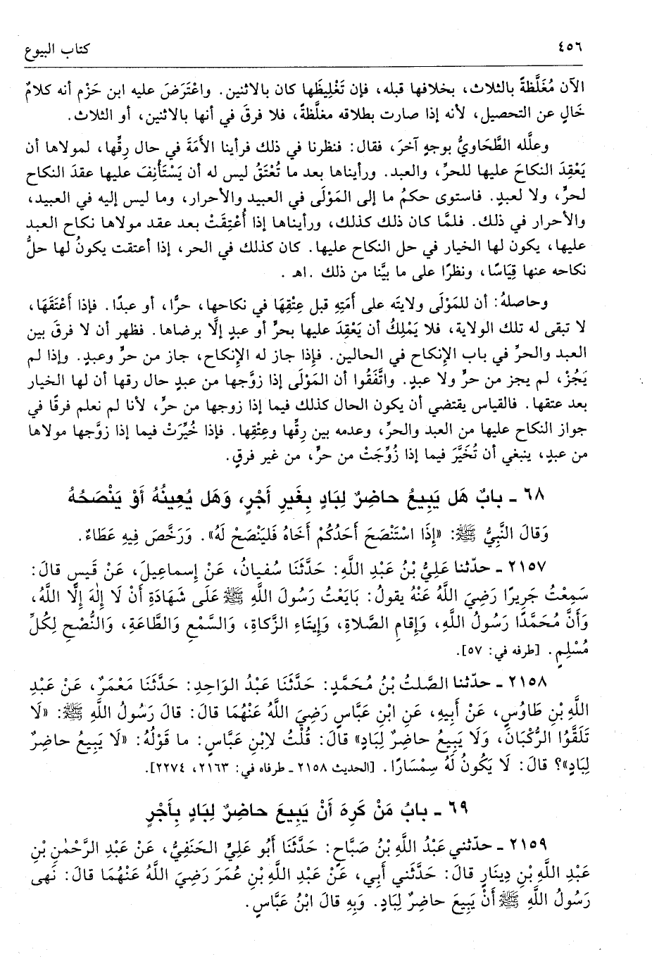 68 - باب هَلْ يَبِيعُ حَاضِرٌ لِبَادٍ بِغَيْرِ أَجْرٍ وَهَلْ يُعِينُهُ أَوْ يَنْصَحُهُ