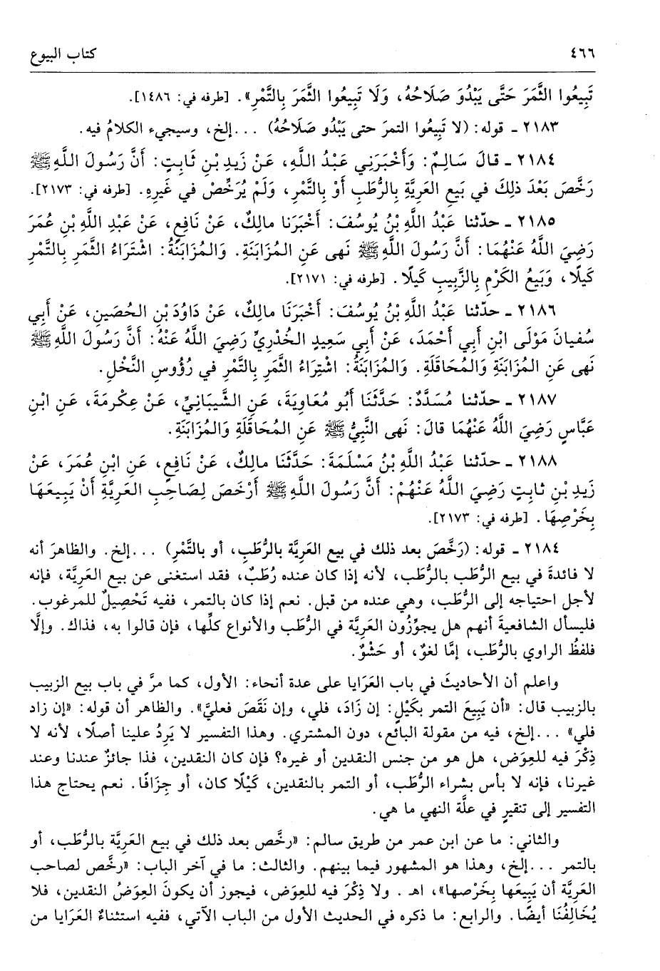 2184 - قَالَ سَالِمٌ وَأَخْبَرَنِى عَبْدُ اللَّهِ عَنْ زَيْدِ بْنِ ثَابِتٍ أَنَّ رَسُولَ اللَّهِ - صلى الله عليه وسلم - رَخَّصَ بَعْدَ ذَلِكَ فِى بَيْعِ الْعَرِيَّةِ بِالرُّطَبِ أَوْ بِالتَّمْرِ، وَلَمْ يُرَخِّصْ فِى غَيْرِهِ. أطرافه 2173، 2188، 2192، 2380 - تحفة 3723