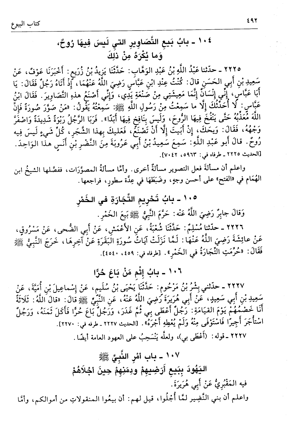 2226 - حَدَّثَنَا مُسْلِمٌ حَدَّثَنَا شُعْبَةُ عَنِ الأَعْمَشِ عَنْ أَبِى الضُّحَى عَنْ مَسْرُوقٍ عَنْ عَائِشَةَ - رضى الله عنها - لَمَّا نَزَلَتْ آيَاتُ سُورَةِ الْبَقَرَةِ عَنْ آخِرِهَا خَرَجَ النَّبِىُّ - صلى الله عليه وسلم - فَقَالَ «حُرِّمَتِ التِّجَارَةُ فِى الْخَمْرِ». أطرافه 459، 2084، 4540، 4541، 4542، 4543 - تحفة 17636