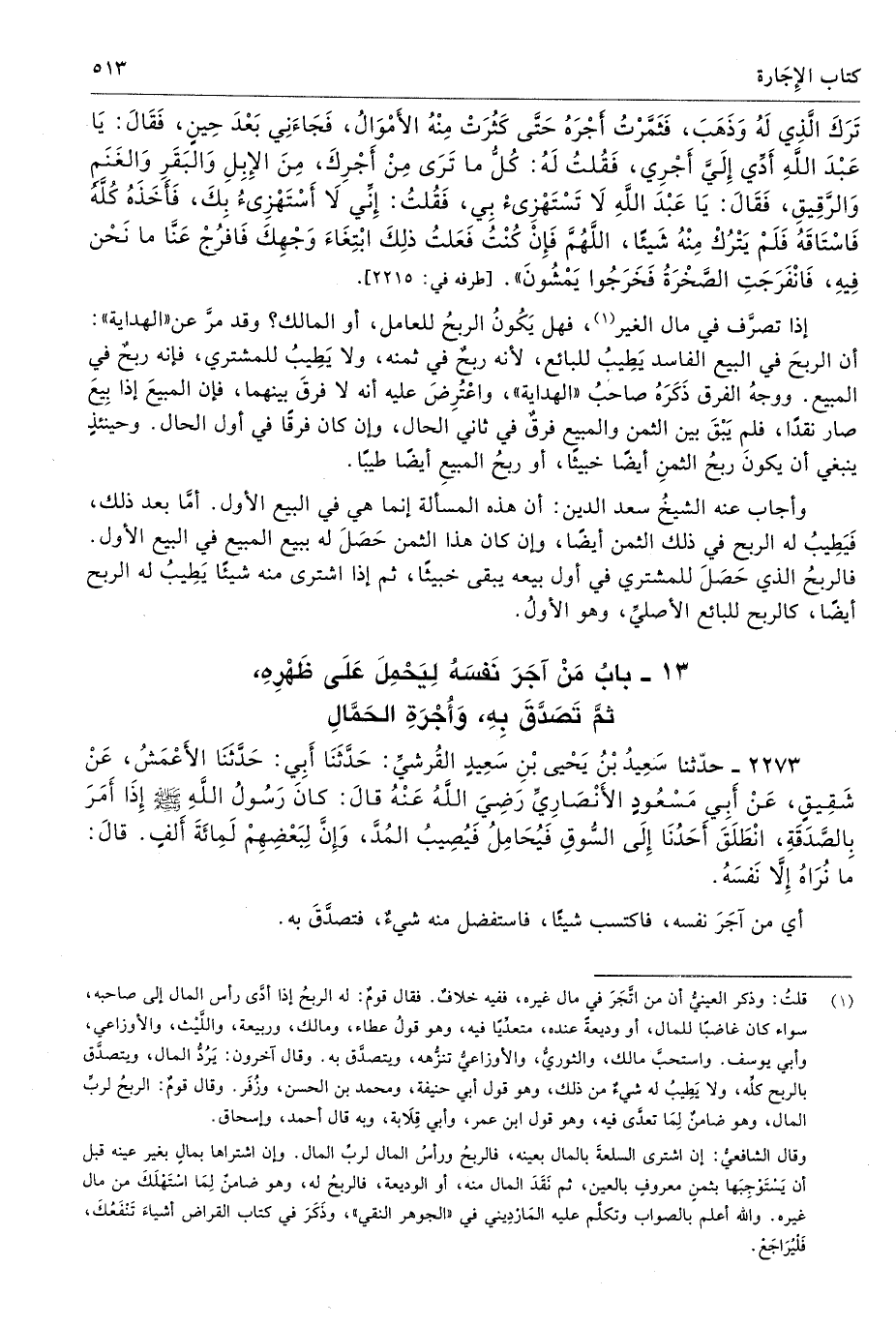13 - باب مَنْ آجَرَ نَفْسَهُ لِيَحْمِلَ عَلَى ظَهْرِهِ، ثُمَّ تَصَدَّقَ بِهِ، وَأُجْرَةِ الْحَمَّالِ