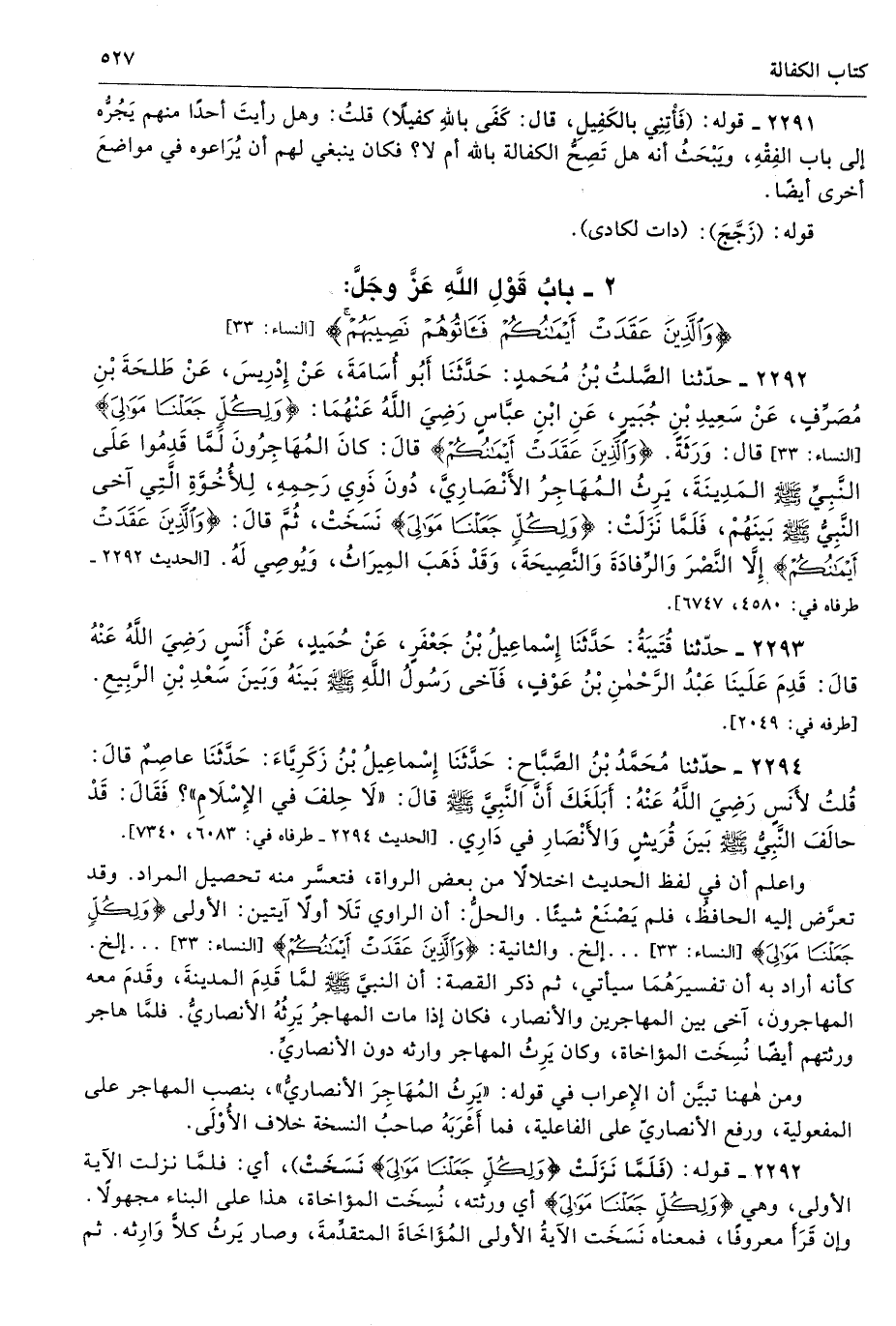 2 - باب قَوْلِ اللَّهِ عَزَّ وجَلَّ: {وَالَّذِينَ عَقَدَتْ أَيْمَانُكُمْ فَآتُوهُمْ نَصِيبَهُمْ} [النساء: 33]