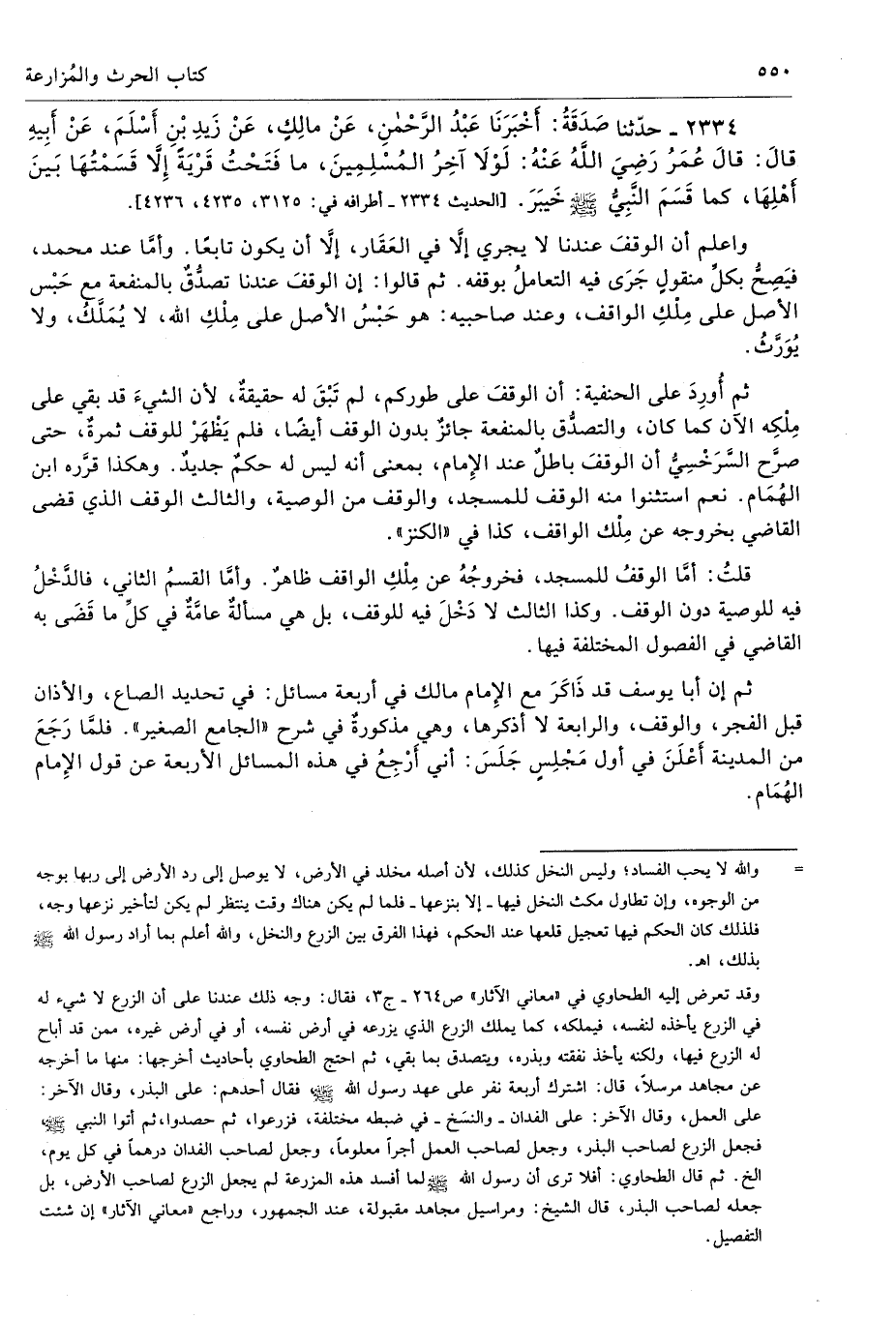 2334 - حَدَّثَنَا صَدَقَةُ أَخْبَرَنَا عَبْدُ الرَّحْمَنِ عَنْ مَالِكٍ عَنْ زَيْدِ بْنِ أَسْلَمَ عَنْ أَبِيهِ قَالَ قَالَ عُمَرُ - رضى الله عنه - لَوْلاَ آخِرُ الْمُسْلِمِينَ مَا فَتَحْتُ قَرْيَةً إِلاَّ قَسَمْتُهَا بَيْنَ أَهْلِهَا كَمَا قَسَمَ النَّبِىُّ - صلى الله عليه وسلم - خَيْبَرَ. أطرافه 3125، 4235، 4236 - تحفة 10389