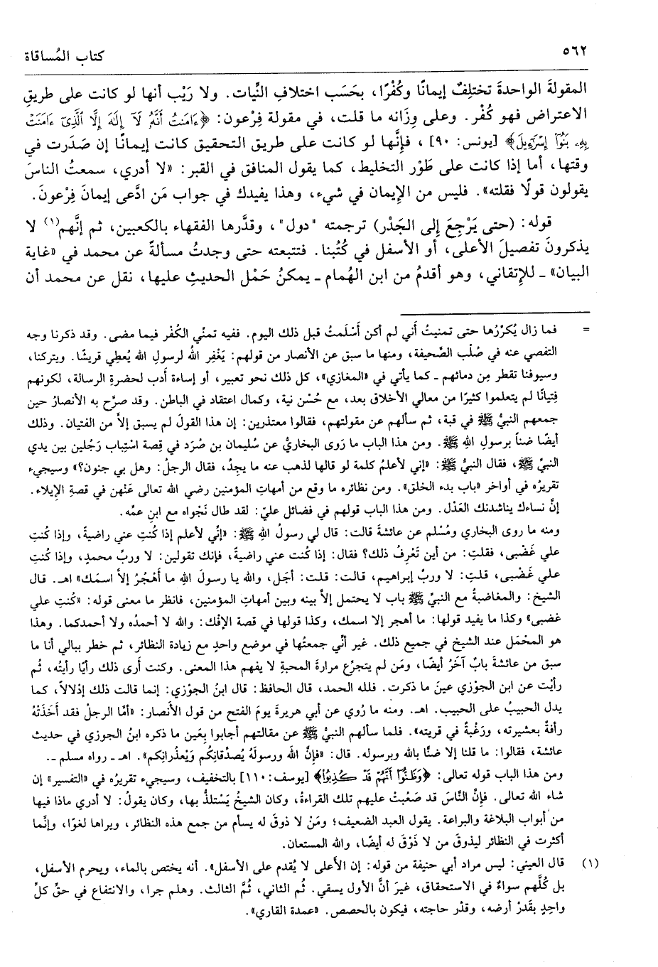 (¬1) قال العيني: ليس مراد أبي حنيفة من قوله: إن الأعلى لا يُقدم على الأسفل". أنه يختص بالماء، ويحرم الأسفل، بل كُلَّهم سواءٌ في الاستحقاق، غيرَ أنَّ الأول يسقي. ثُم الثاني، ئُمَّ الثالث. وهلم جرا، والانتفاع في حقِّ كلِّ واحِدٍ بقَدرْ أرضه، وقدْر حاجته، فيكون بالحصص. "عمدة القاري".