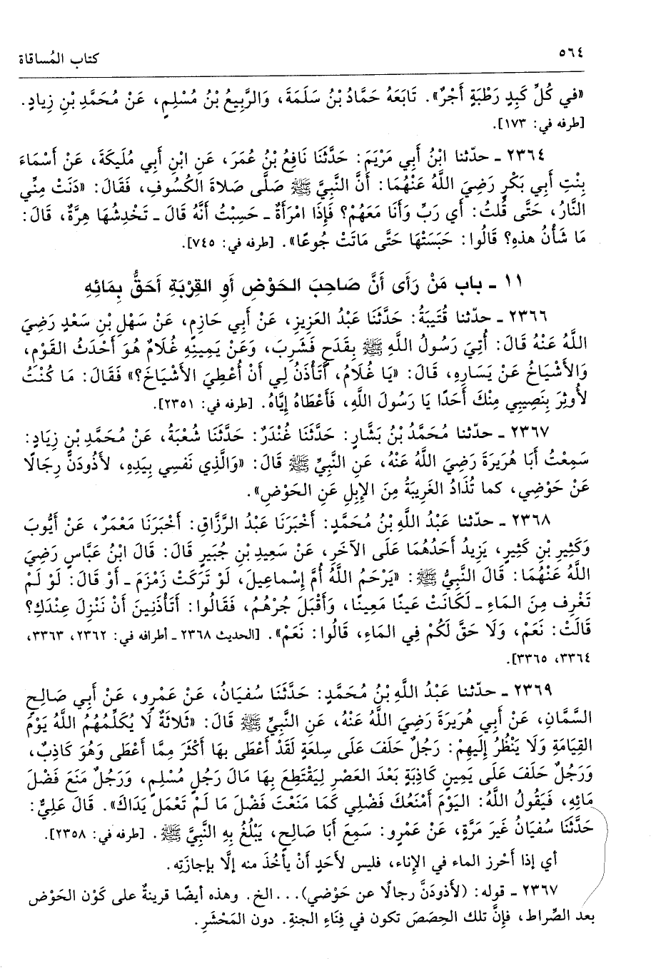 «فِى كُلِّ كَبِدٍ رَطْبَةٍ أَجْرٌ». تَابَعَهُ حَمَّادُ بْنُ سَلَمَةَ وَالرَّبِيعُ بْنُ مُسْلِمٍ عَنْ مُحَمَّدِ بْنِ زِيَادٍ. أطرافه 173، 2466، 6009 - تحفة 12574، 14363 أ - 147/ 3