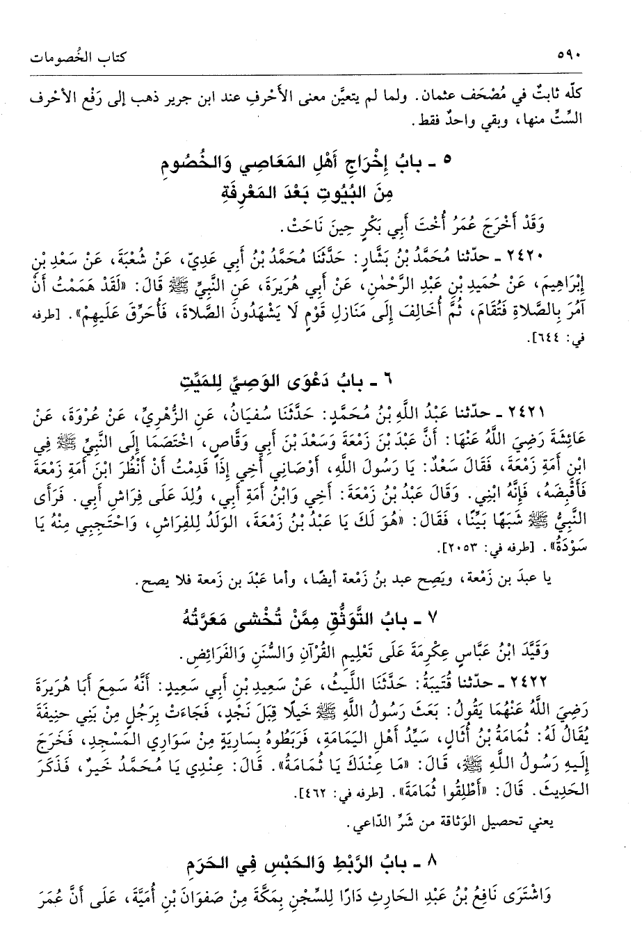 5 - باب إِخْرَاجِ أَهْلِ الْمَعَاصِى وَالْخُصُومِ مِنَ الْبُيُوتِ بَعْدَ الْمَعْرِفَةِ